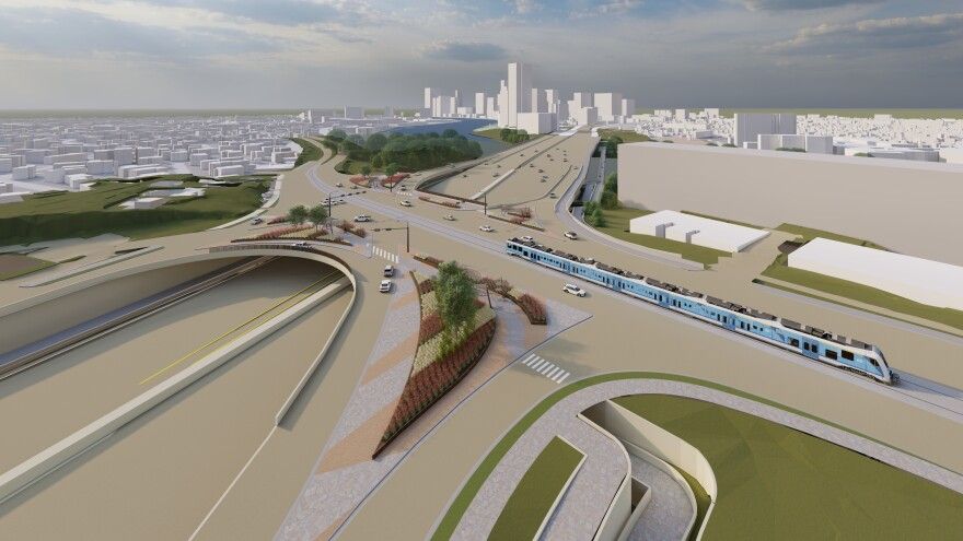 The tunnel will run underneath I-35 and then westward beneath East Cesar Chavez.